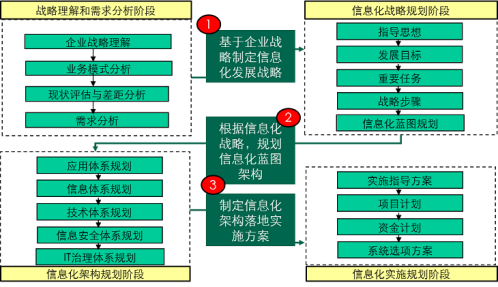 基于企业的总体战略,细致分析达成总体战略的执行路径,以及影响企业总体战略达成的业务和管理痛点,结合企业当前的信息化发展状况,规划与企业战略执行所匹配的信息化蓝图。