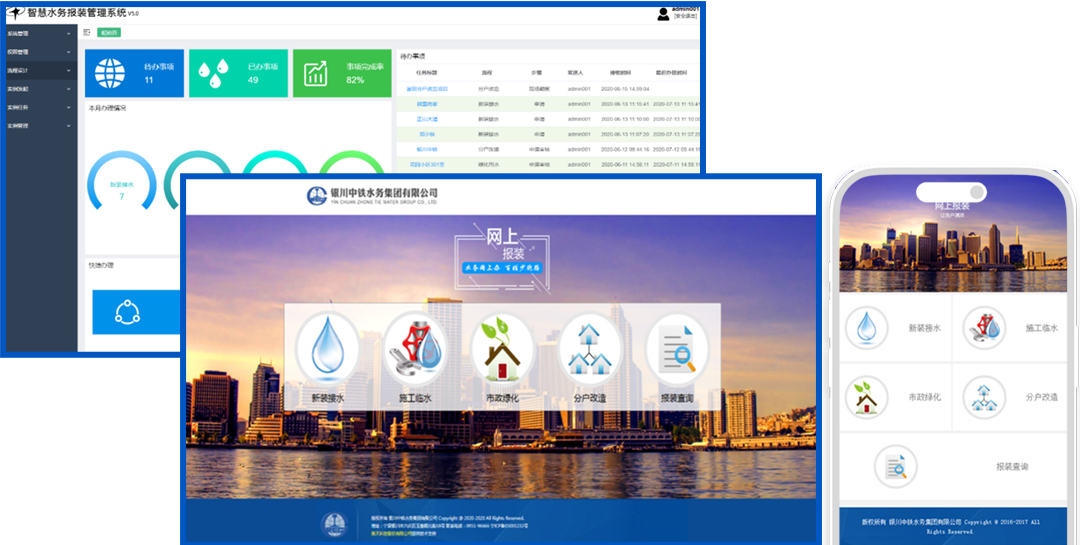 报装管理系统采用目前最先进的工作流平台,将繁琐的报装业务整合成规范的工作流程,使用者只需要在电脑上填写相关的表单,系统就会按照定义好的流程自动往下流转。在这个过程中,系统实现了报装工程资料录入、勘察设计、出图会审、预决算、竣工验收、水表采集、资料归档等流程的动态管理,通过电子文档网上流转,实现信息共享,大大的提高了工作效率。