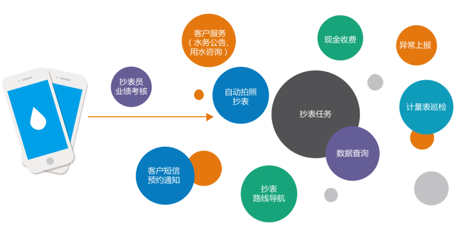 APP移动互联抄表系统可以帮助水司取代传统的抄表方式,弥补传统抄表方式(手工抄表和抄表机抄表)中的不足,提升抄表效率50%,杜绝估抄、漏抄、错抄及人情水情况,快速发现用户用水异常,有效降低水司维护成本,加强抄表人员工作效率。APP移动互联抄表将彻底颠覆传统人工抄表模式,是水行业抄表的一场革命!