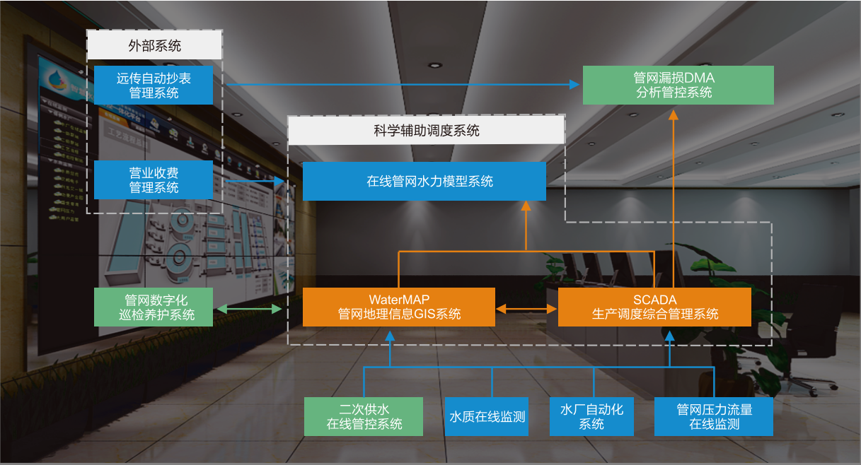 水厂综合生产管理系统是供水生产管理调度总体解决方案的具体实现,将城市供水生产监控、调度、数据分析模型和业务管理统一到一个综合性的系统平台,实现了供水全过程生产运行数据采集存储、运行情况可视化展示、调度分析决策、业务过程管理、异常监测预警及运行能效分析和报表管理等内容,全面提升调度管理水平,将以传统经验调度和数据调度为中心向以智能优化调度管理为中心的延伸、扩展,实现工作方式的根本性转变和提升,是调度管理科学化、规范化、流程化、精细化、电子化、网络化和动态化 的重要方式。