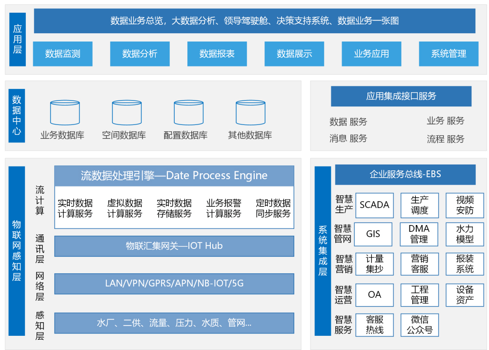 可以从不同维度、不同空间对生产运维、管网管理、客户营销、运营管理、综合服务等进行综合管控决策分析展现。