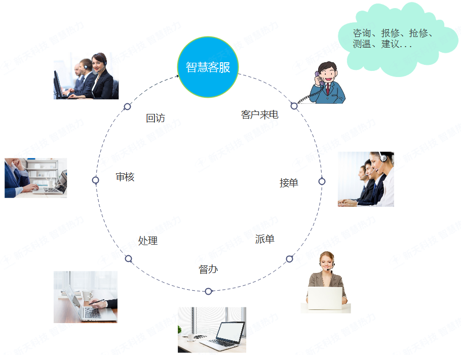 智慧客服是供热企业借助智能化、信息化手段来实现与客户之间高效交流。"智"是站在大数据分析与应用基础上,"慧"是指充分利用大数据分析得出的结论做好服务管理与保障工作。